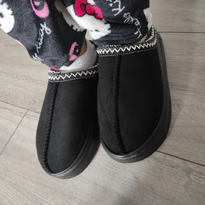 La combinaison peluche, plateforme et semelle antidérapante protège du froid et des chutes, rendant les routines domestiques plus agréables.